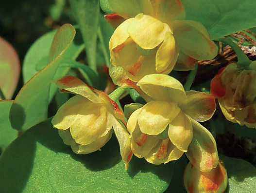 Smooth 2-3cm obovate dark green leaves born from thorny stems, are joined in spring by scented, nectar-rich yellow cupped flowers. In early autumn beautiful glossy scarlet-red berries appear, matched by a dazzling display of foilage, turning orange, red and purple before dropping in winter.